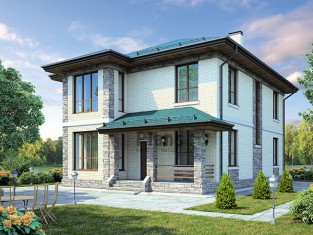 Общая площадь 192.3 Кровля чердачная Наружные стены поризованный кирпич Наружная отделка лицевой кирпич Перекрытия монолитная ж/б плита Покрытие кровли мягкая кровля Фундамент монолитная ж/б плита Цоколь натуральный (искусственный) камень Этажность 2 этажа